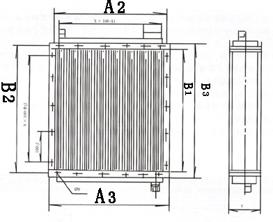 SRL型散熱器在順氣流方向分二排管與三排管排列,其型號舉例如下: