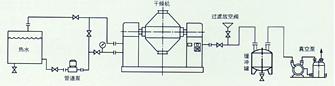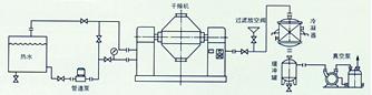 在密閉的夾層中通入熱能源(如熱水,低壓蒸汽或導熱油),熱量經內殼傳給被干燥物料。在動力驅動下,罐體作緩慢旋轉,罐內物科不斷地混合,從而達到強化干燥的目的。